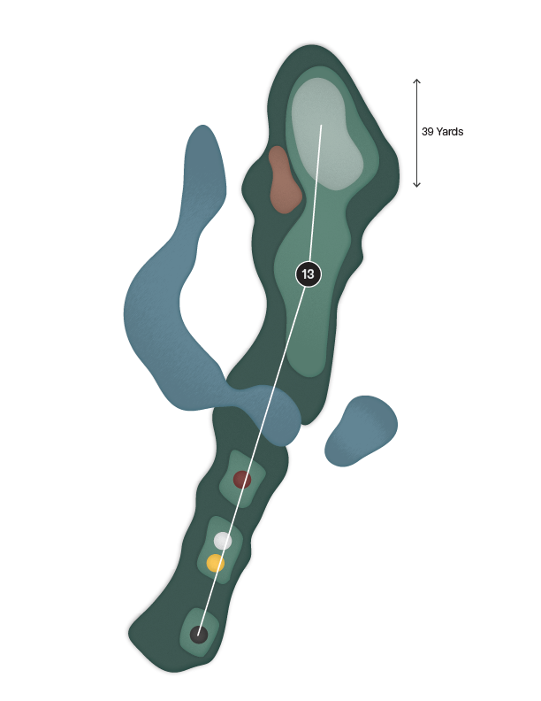 HOLE 13 This attractive par three has a deep bunker guarding the left side of the green. It plays half a club long. PAR 3 HCP Men's HCP 8 | Women's HCP 18 189 Yrds 162 Yrds 154 Yrds 154 Yrds 132 Yrds 132 Yrds Hole Sponsor