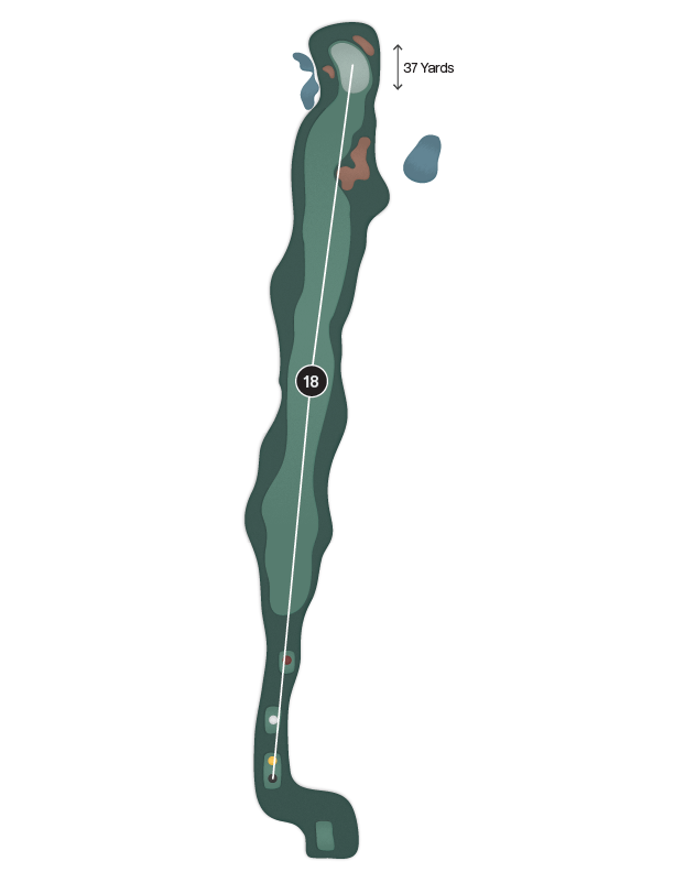 The longest par five has a huge bunker on the right side of the second shot landing area. There is a pond to the left of the multi-tiered trapped green. For the tee shot, aim at the flag pole.